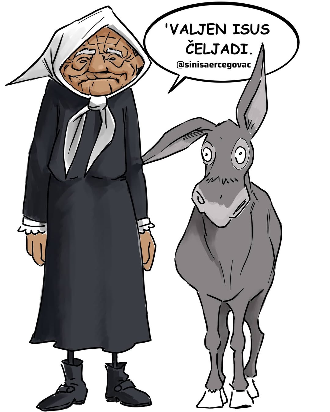 Baba je na vrijeme stigla i smjestila se u foto-kutak, magarac je malo zbunjen, ali i on će vas rado dočekati.